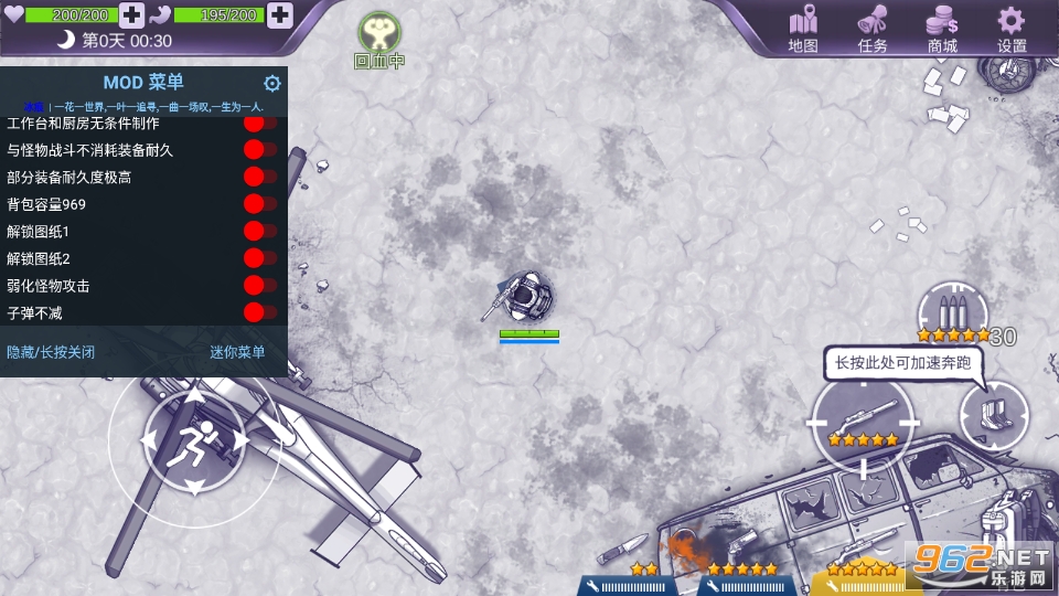 游戏采用俯视视角,副本无迷雾,一切地形与怪物尽收眼底,是迎难而上,还是避其锋芒都由您来决定;双轮盘操作,可一边移动一边射击,武器蓄力时,亦能利用走位躲掉怪物和丧尸的攻击。