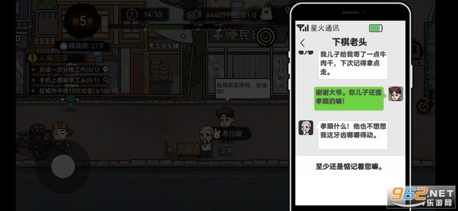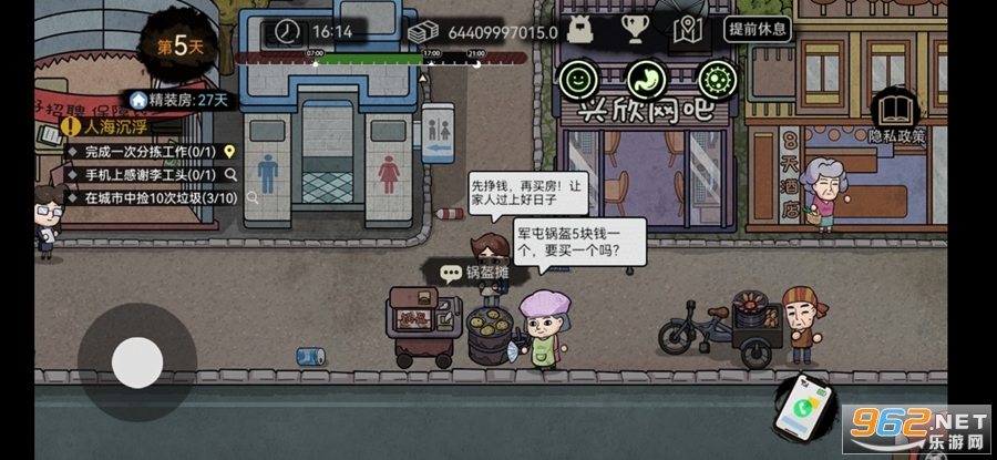 《打工生活xaluo版》是一款模拟打工人的经营手游,游戏中玩家将扮演一个在城市中挣扎的打工人,父亲生病住院需要钱、租房需要钱、妹妹上学需要钱等等,你将在这个城市通过捡垃圾等等来赚取金钱,努力的活下去,注意保持自己的心情、饱腹度、健康的数值,不要过低。