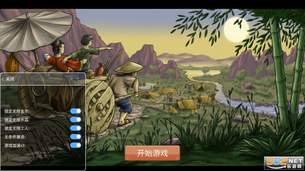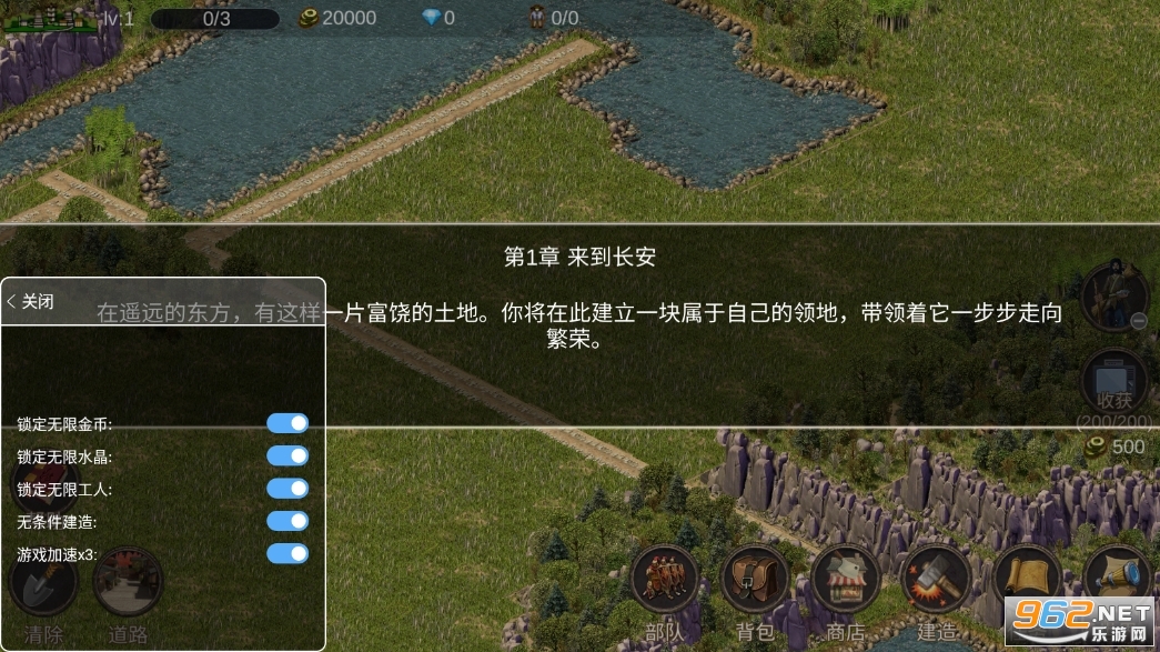2.开局在右边的最下角,向左滑可以看到河流,在靠近水和河流的地方就可以建造贸易站。