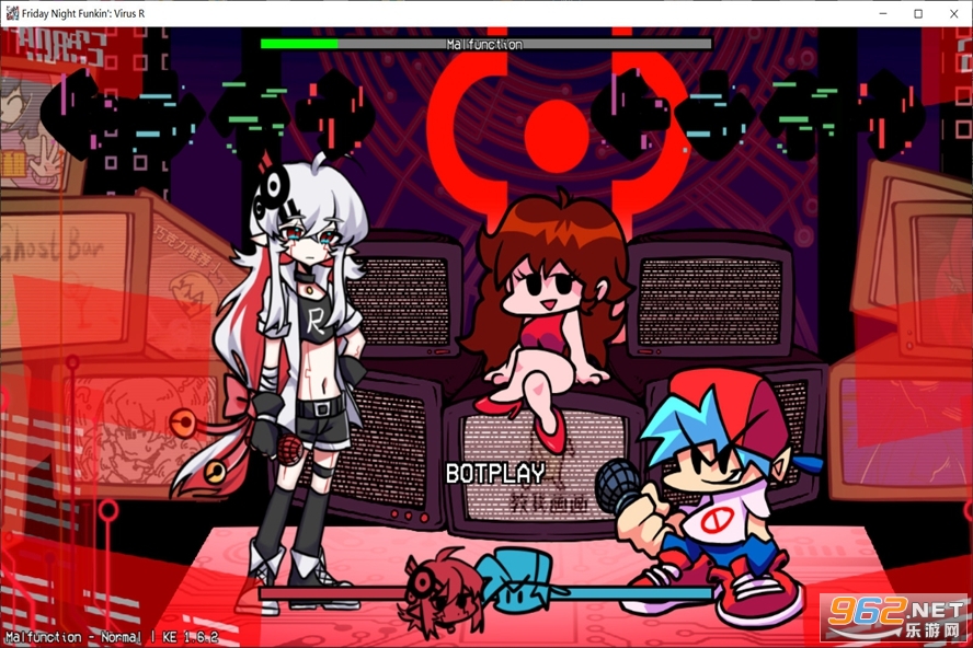 《周五夜放克国人模组Vs Virus R》(Friday Night Funkin)是由国内大神玩家全程独立制作完成的新mod模组,上线了新的Virus R角色,并增加新的曲目,讲述的是GF和BF约会时不小心被吸进了废弃的电视机,来到了一个神秘的空间,并与Virus R开始了一段较为精彩的rap说唱对决。