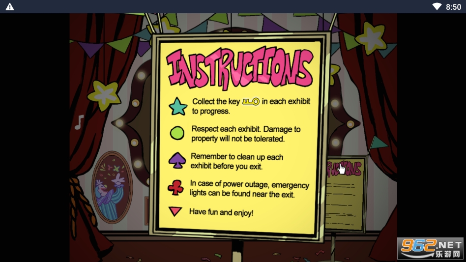 pc移植的一款解谜冒险游戏,以展览馆为背景,游戏里面拥有非常多的展品,每个展品中都隐藏着一定的线索,玩家需要开动脑筋,发现其中隐藏的机密,躲避小丑的追杀,逃离这里!