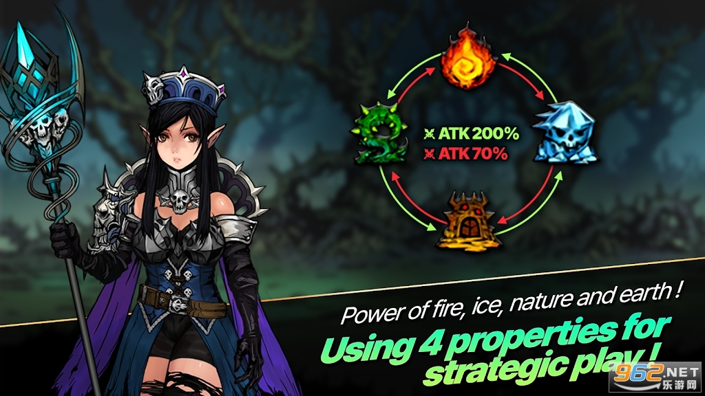 火、冰、自然和地球的更多功能!战略游戏与 4 个属性!