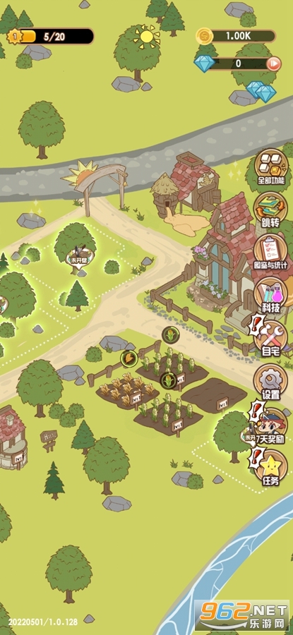 玩的快的小伙伴在1-2小时内就可以解锁新地图啦,后面还有鱼塘、农贸市场等内容。然后继续推主线、研究科技、推主线,直到我们将奖杯立在花语农场里。