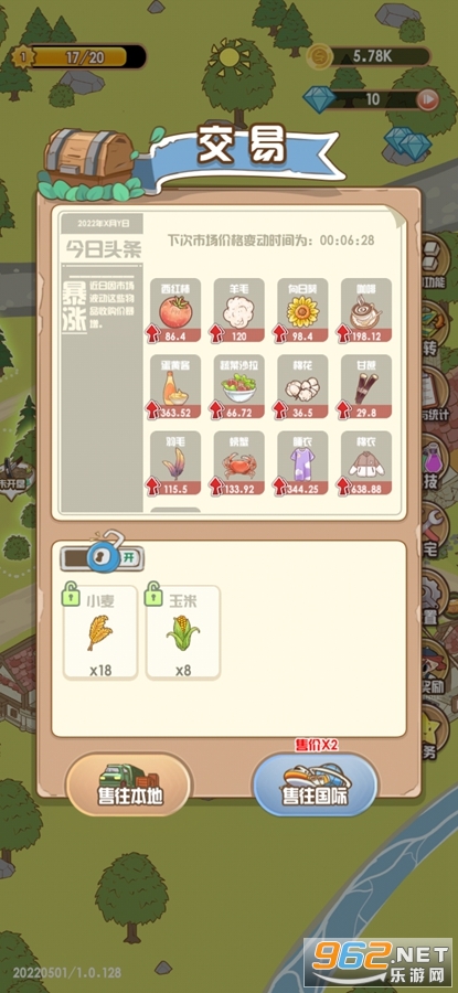 开始之后跟着提示走,引导结束后顺手在第四块田上种好作物,玉米或者小麦都可以。把奖励领一下,第二次卖出之后应该可以完成主线要求在市场获得200金币的任务。