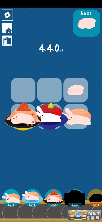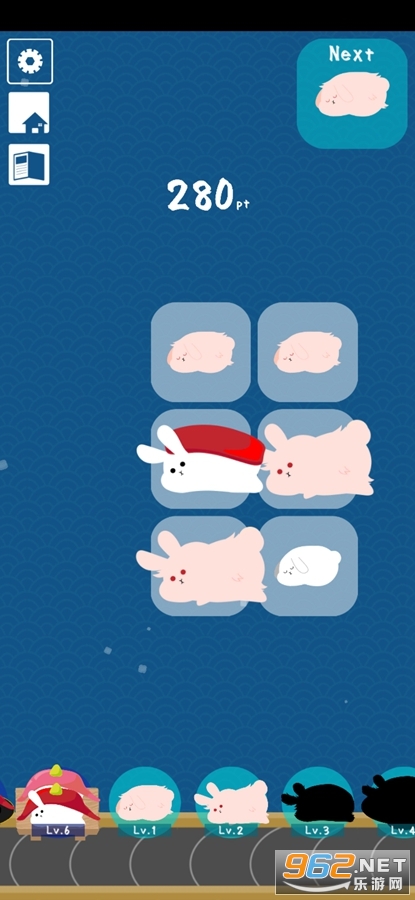 1.这个游戏的操作方法也是没有难度的,通过简单的合并就可以得到一个全新的兔子寿司。
