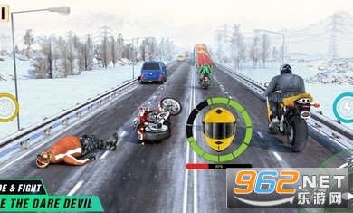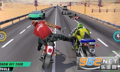 一款非常爽快的摩托车竞速游戏,游戏中玩家将在公路上和其他的对手进行一场激烈的对抗,通过各种攻击方式把对手打飞获得更多的优势,当然打人的时候也需要注意路况避免翻车,游戏的玩法爽快有趣,推荐给喜欢竞速驾驶游戏的玩家。
