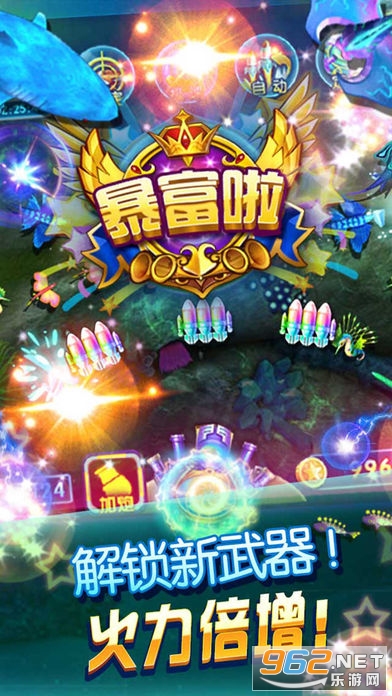 4、游戏构建了逼真宏伟的海底渔场世界,壮观华丽鱼阵,酷炫捕鱼特效,给你极佳视觉享受!