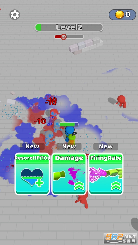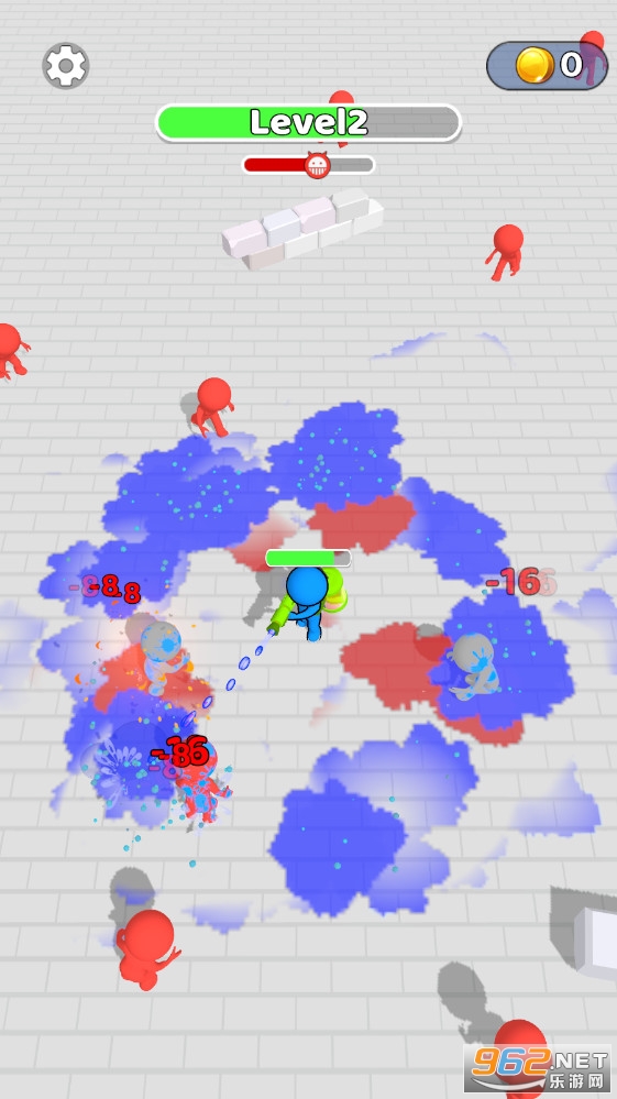 敌人会从四面八方攻击你,你可以在地上喷洒液体攻击敌人,杀死敌人升级,然后增强你的能力并杀死老板。