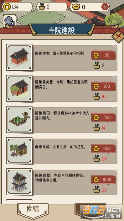 一款非常好玩的古风模拟经营手游,采用了熟悉的点击放置操作方式,各位玩家们通过点击香客的头像来完成引导,保证每个来寺庙上香的香客们都能够有一个好的印象,并由此积累一定的善缘,获得更多的救济。