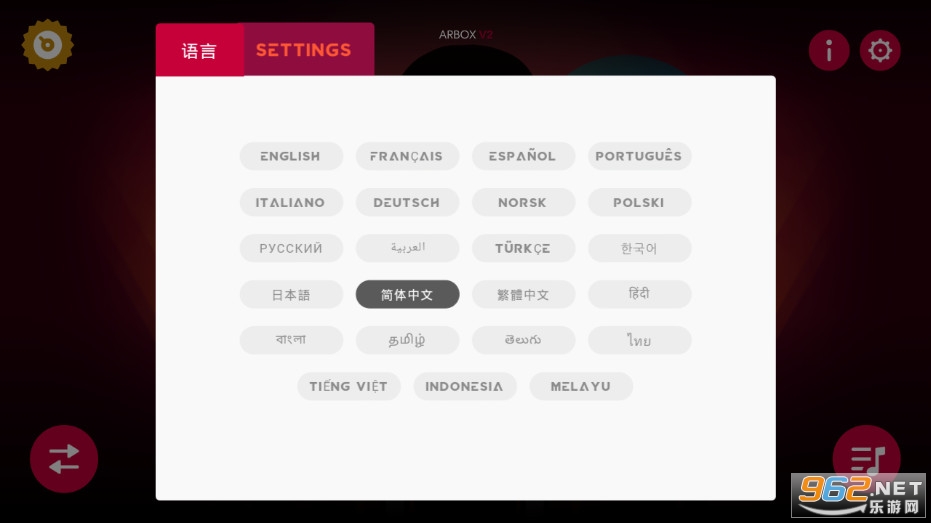游戏内置简体中文,玩家可在主菜单右上角的齿轮中的语言选项进行选择。