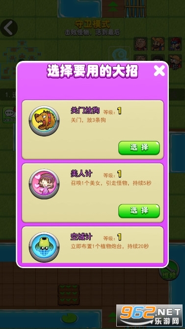 【大招使用】在玩家进入游戏之后还能够选择大招的使用,不同的难度将会有不同的作用,帮助玩家进行游戏的挑战。
