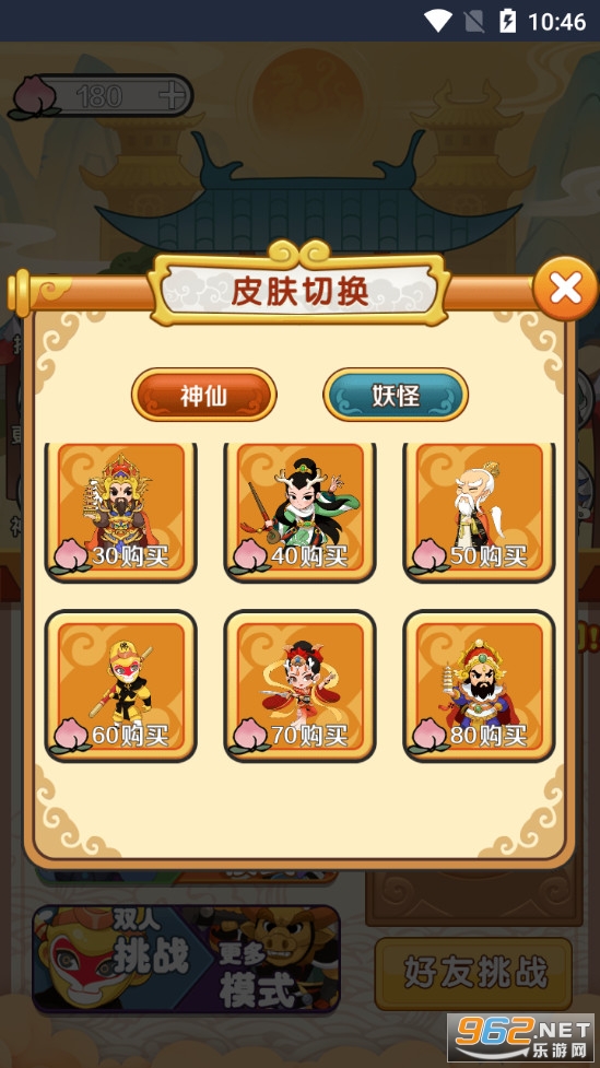 非常有新意的主题,加入了西游记元素,玩家可以使用蟠桃去解锁孙悟空等各种西游皮肤,有着单人、双人、排位等多样玩法,游戏已修改破解,免广告获得奖励,轻松体验。