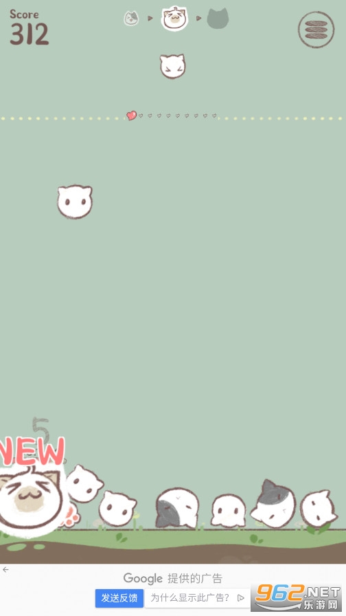 一款轻松有趣的休闲益智游戏,在这款游戏中玩家需要将相同的猫咪叠加在一起完成合成获得更高的分数,游戏的操作简单容易上手,然后不断的提升猫咪和爱心,让你能够合成更多可爱的猫猫。
