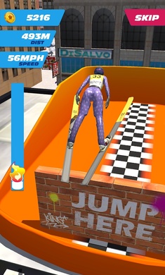 一款非常有趣的跳台滑雪模拟游戏,游戏中玩家需要在下坡时不断的加速,让自己能够飞的更高更远,选择合适的起跳时间,游戏的操作简单容易上手,越过各种各样的张海,最终到达终点,推荐给喜欢休闲游戏的玩家。