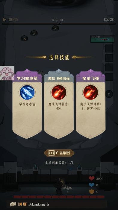 击杀一定数量后出现天赋技能的选择。