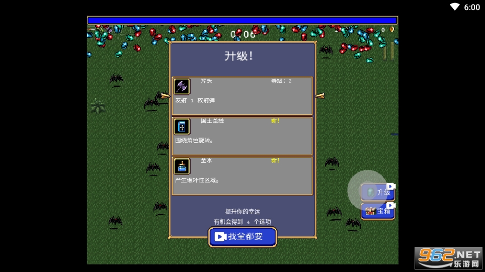 《吸血鬼幸存者vampire survivors》是一款带有roguelite元素的哥特式恐怖冒险游戏,操作很简单,玩法丰富,充满了创意,玩家在这里可以解锁不同的英雄,不同的装备和道具,不断地升级,提升属性,控制角色在场景中移动,对付四面八方以千计的夜间生物,活到黎明!
