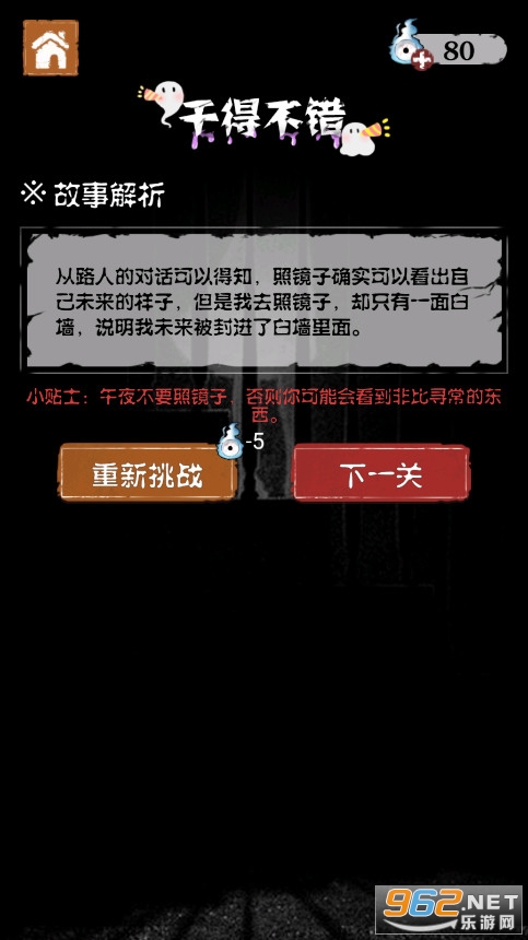 7、每个故事贴心的给大家准备了“提示”,如果还是不明白,可以通过将故事分享给好友的方式来“查看答案”,让一份“恐极”变成两份“恐极”!