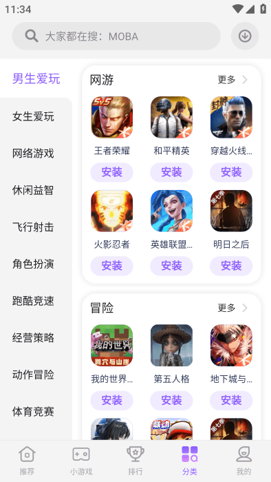 在分类这里玩家们可以更好的找到自己喜欢类型的游戏,查找起来方便一些。