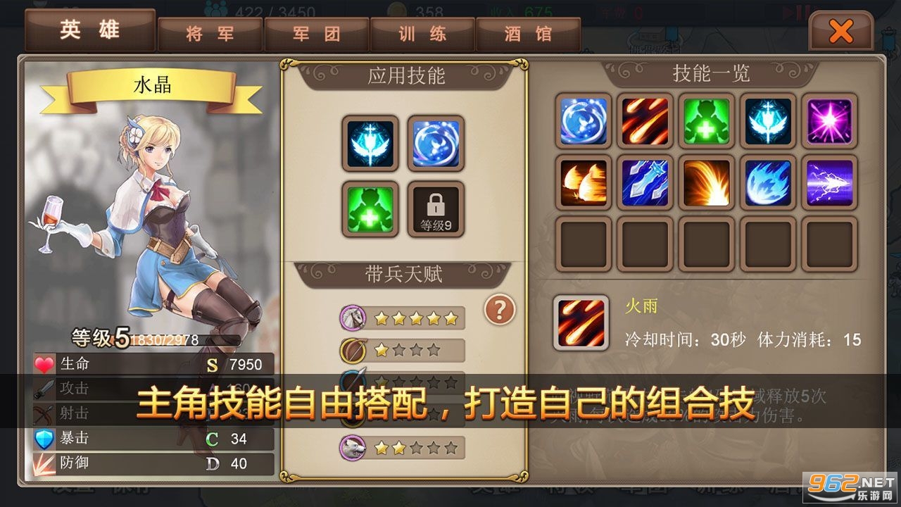 特色:率领麾下凶猛强悍的草原战士冲入战场;利用战吼效果立即影响战局;在运营和战斗中利用衍生的“奴隶”军团博取最大化收益