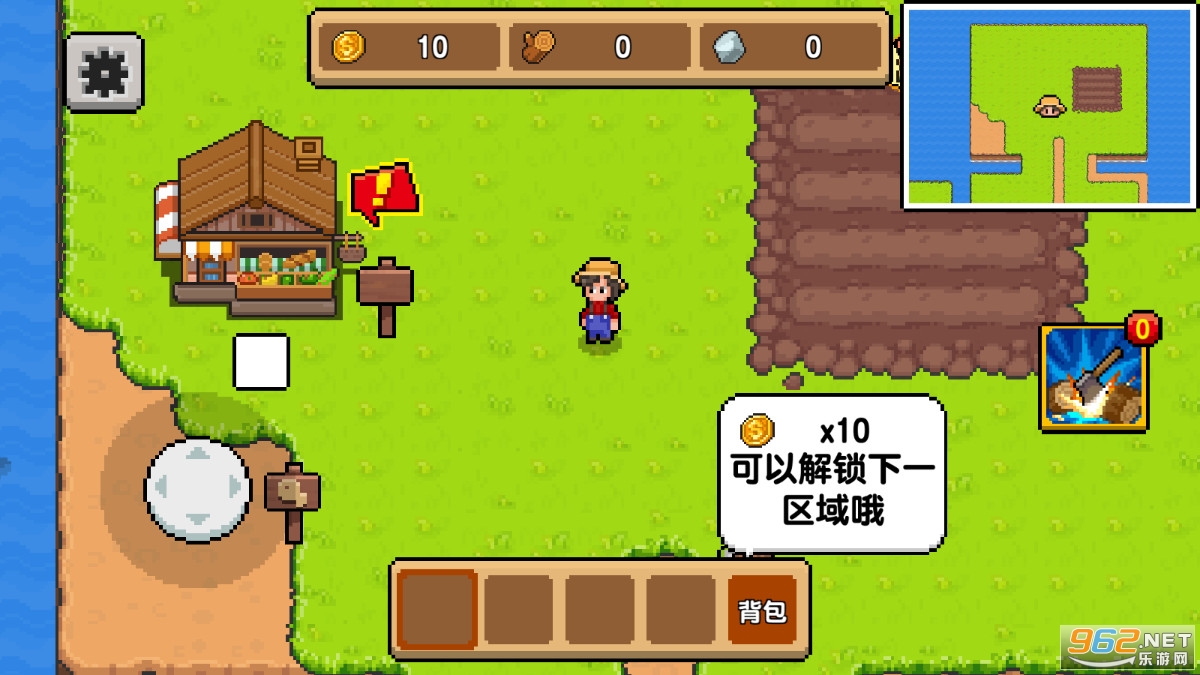 一款有趣的休闲模拟经营游戏,在这款游戏中你想要获得丰收就需要努力的耕作收割。从一小块农田开始,探索未知的区域,还可以钓鱼、采集果树等等,游戏的玩法丰富有趣,推荐给喜欢模拟经营游戏的玩家。
