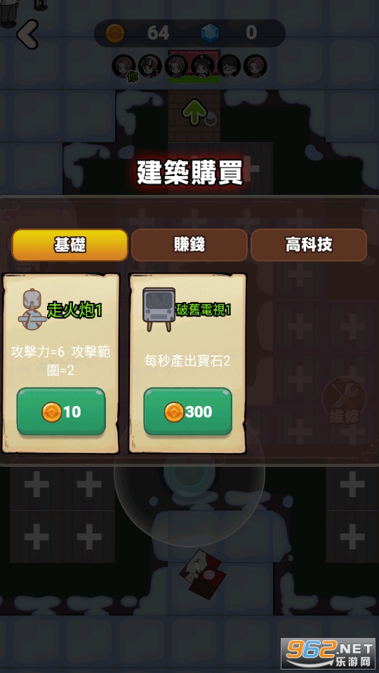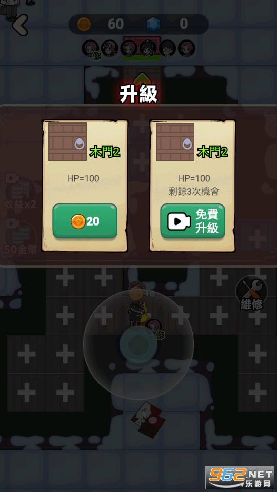 1.作为幸存者,玩家需要拿起道具和建造技术快速获得金币和钻石进行建造。或者升级防御塔,打败鬼魂,逃离鬼屋。