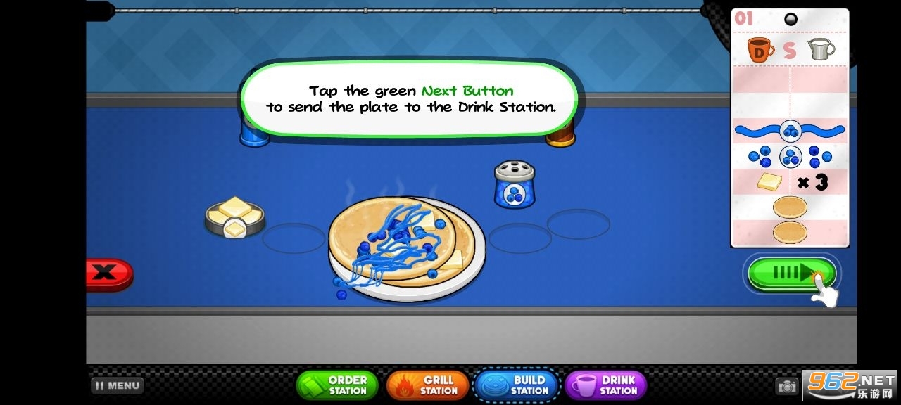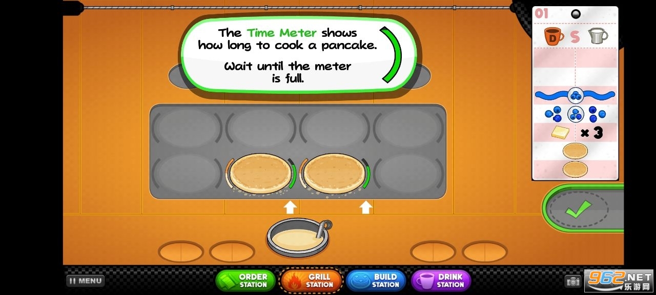 餐厅的每个站都是一个动手过程,您必须在所有不同站之间执行多项任务才能跟上您的订单。将面糊倒在烤盘上,在面糊中加入混合物,然后继续检查以将烙饼翻到一半。将盘子堆满煎饼、糖浆和美味的配料,这些配料会随着每个假期的变化而变化。添加一杯清爽的果汁或一杯热咖啡来完成早餐,然后将食物供应给饥饿的顾客!