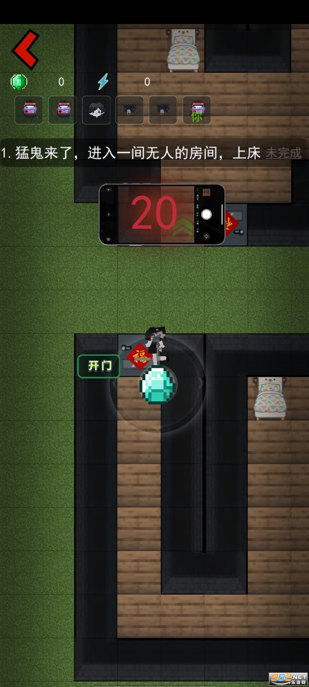 1、游戏中玩家可以任意的进入到一个房间中,躺在床上之后就可以产生绿宝石,也就是金币;