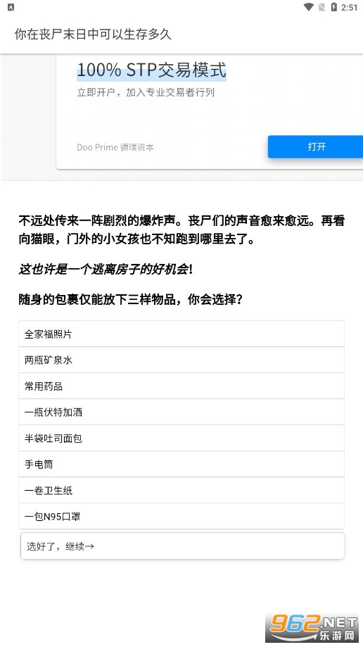 2、末日中你的选择至关重要,每一次选择对你的生存时间影响很大;