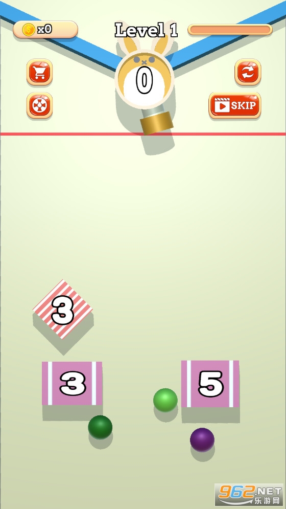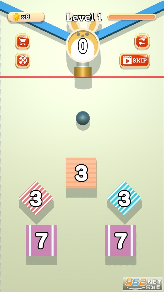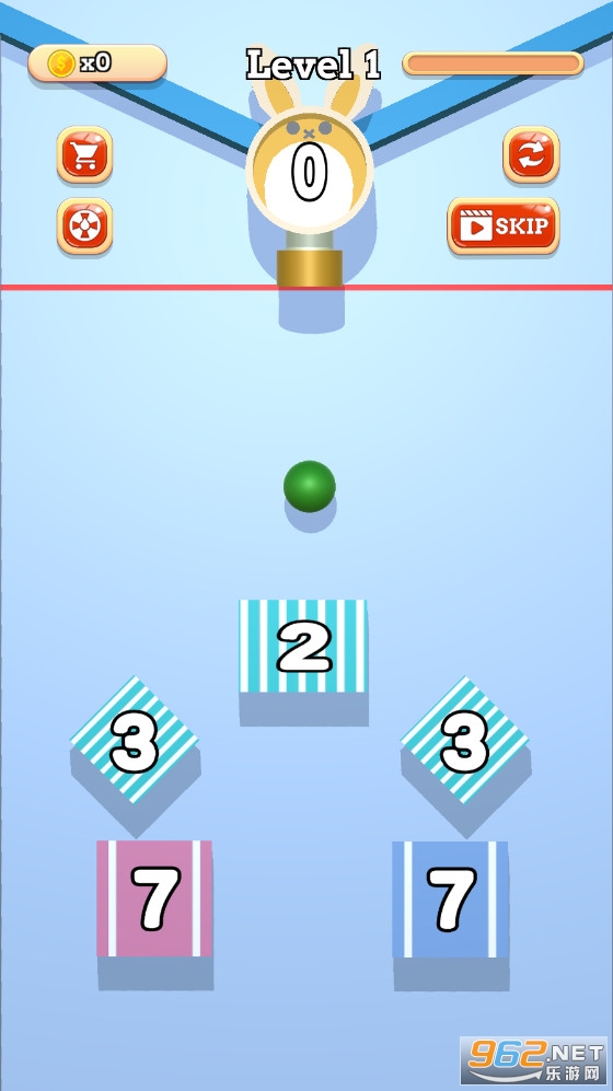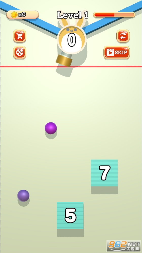 拖动手指控制小球的发射方向,调整发射角度以击中方块。每次球击中挡块,挡块的数量会依次减少。数字归零后,方块消失。击中所有方块并消失后,即可通关。请注意,积木会向上移动,一旦积木到达顶部,游戏就输了,游戏结束了。
