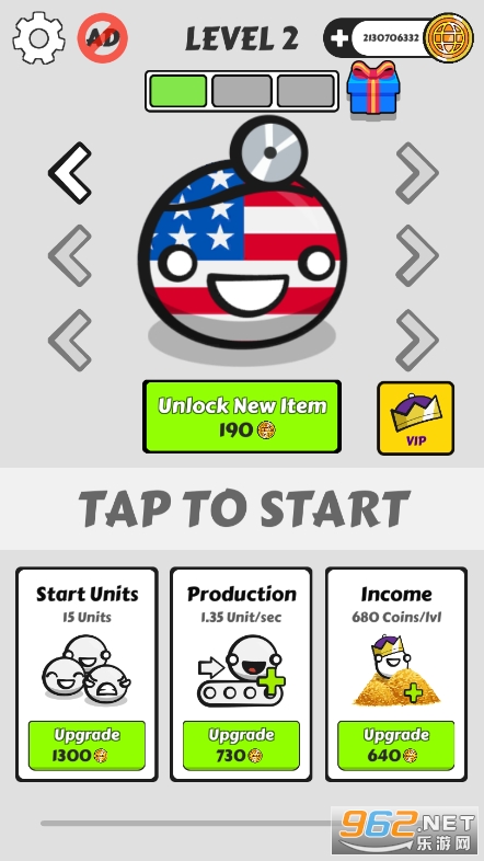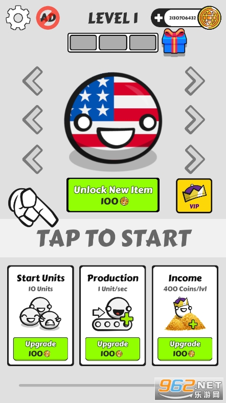 《国家球战争》(Country Balls Io: Battle Arenac)是一款全新的放置类策略战争游戏,玩法类似之前的学科对抗赛,玩家使用一个球球可以扮演任何你想要扮演的国家,解锁不同的皮肤武器,升级球球的产量,收入,单位等等,一步步的攻占领土,逐步扩张,侵占敌军阵地即可获得胜利,玩法简单,策略感超强!