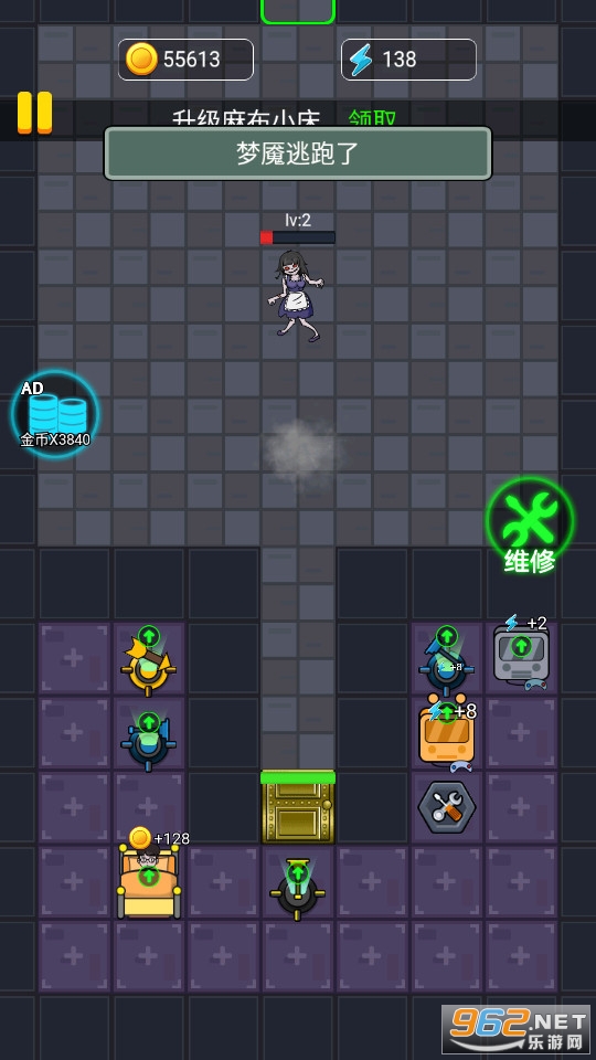 5、在房间内合理建造防御塔,用各种建筑设施提高防御力攻击力,抵御门外的猛鬼攻击,努力生存到最后。