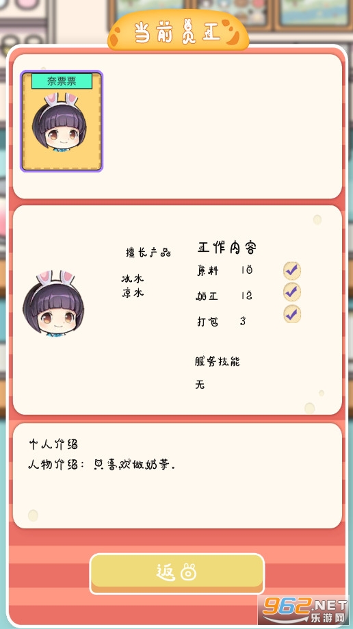 一款有趣的休闲模拟经营游戏,在这款游戏中你可以亲手来调制各种不同口味的奶茶。游戏的操作简单,不断的宣传吸引更多的客户,不断的丰富菜单,雇佣员工,让你的小店蒸蒸日上。推荐给喜欢休闲游戏的玩家。