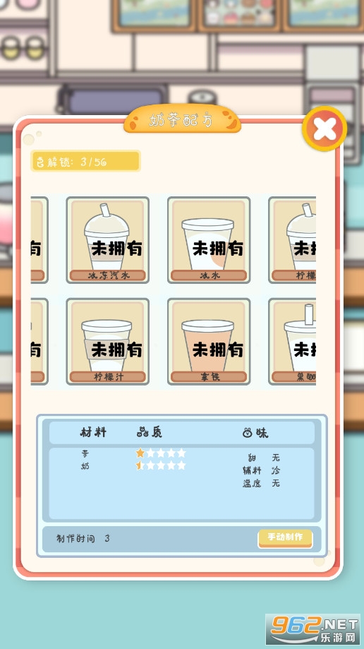 2、你可以不断解锁更多奶茶制作技巧,创新更多不同奶茶口味,会给你带来更多经营收益。