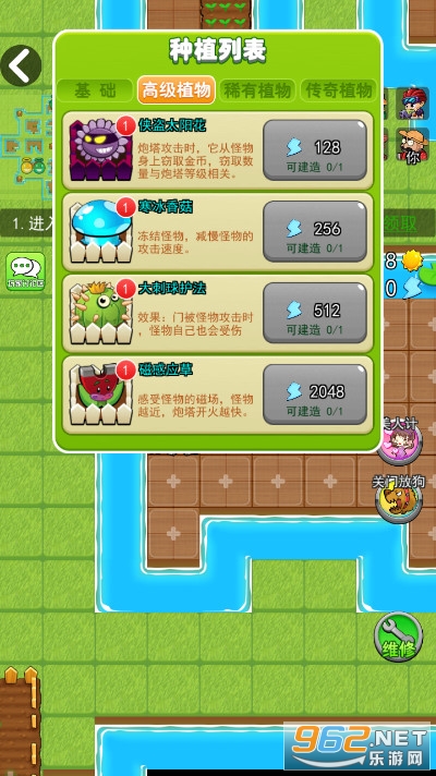 2、炮塔的搭配选择:游戏中的植物炮塔有各种各样的功能,例如没有什么特别之处的普通炮塔,攻击力较高的红色植物炮塔,带有减速效果的冰霜植物炮塔等等,玩家要合理利用这些炮塔的效果进行搭配,对僵尸进行有效的打击。