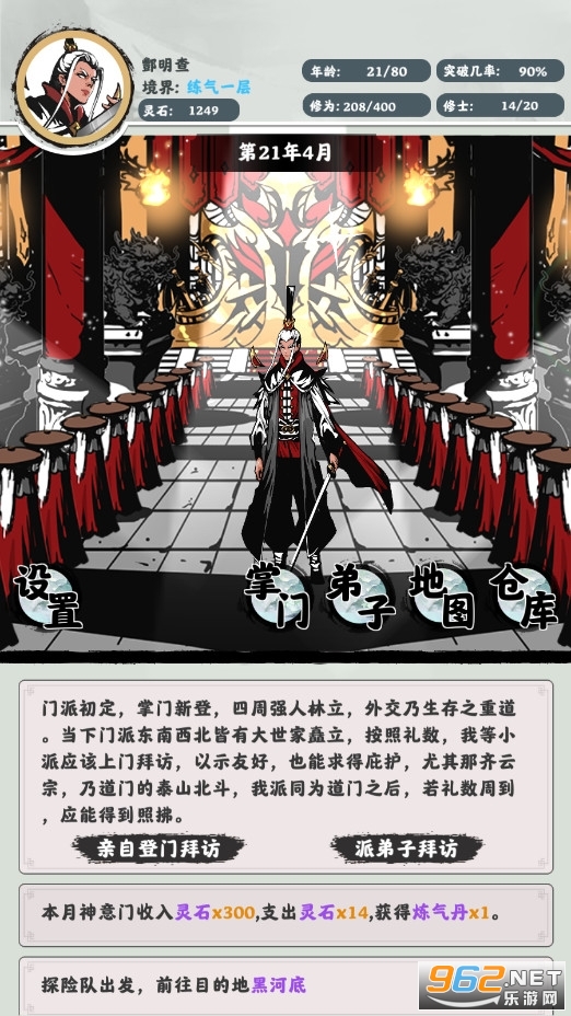 一款非常好玩的修仙题材的冒险游戏,玩家在游戏中需要管理好自己的门派,成为合格的掌门,把你的宗派发扬光大,争取早日一统仙界吧!