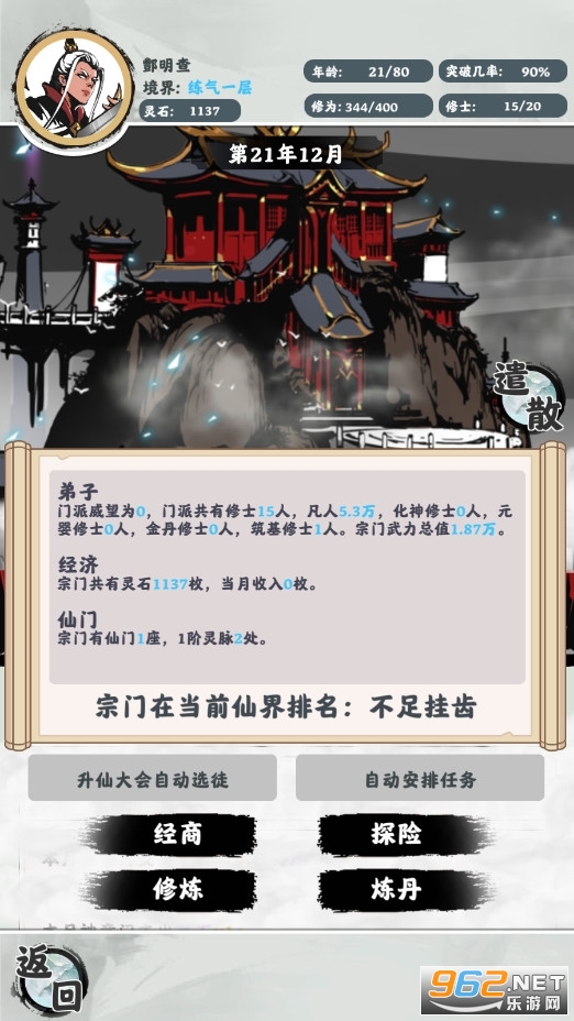 3、培养不同资质的弟子来增强你的门派实力,提升自己的修为来带领弟子飞升成仙。