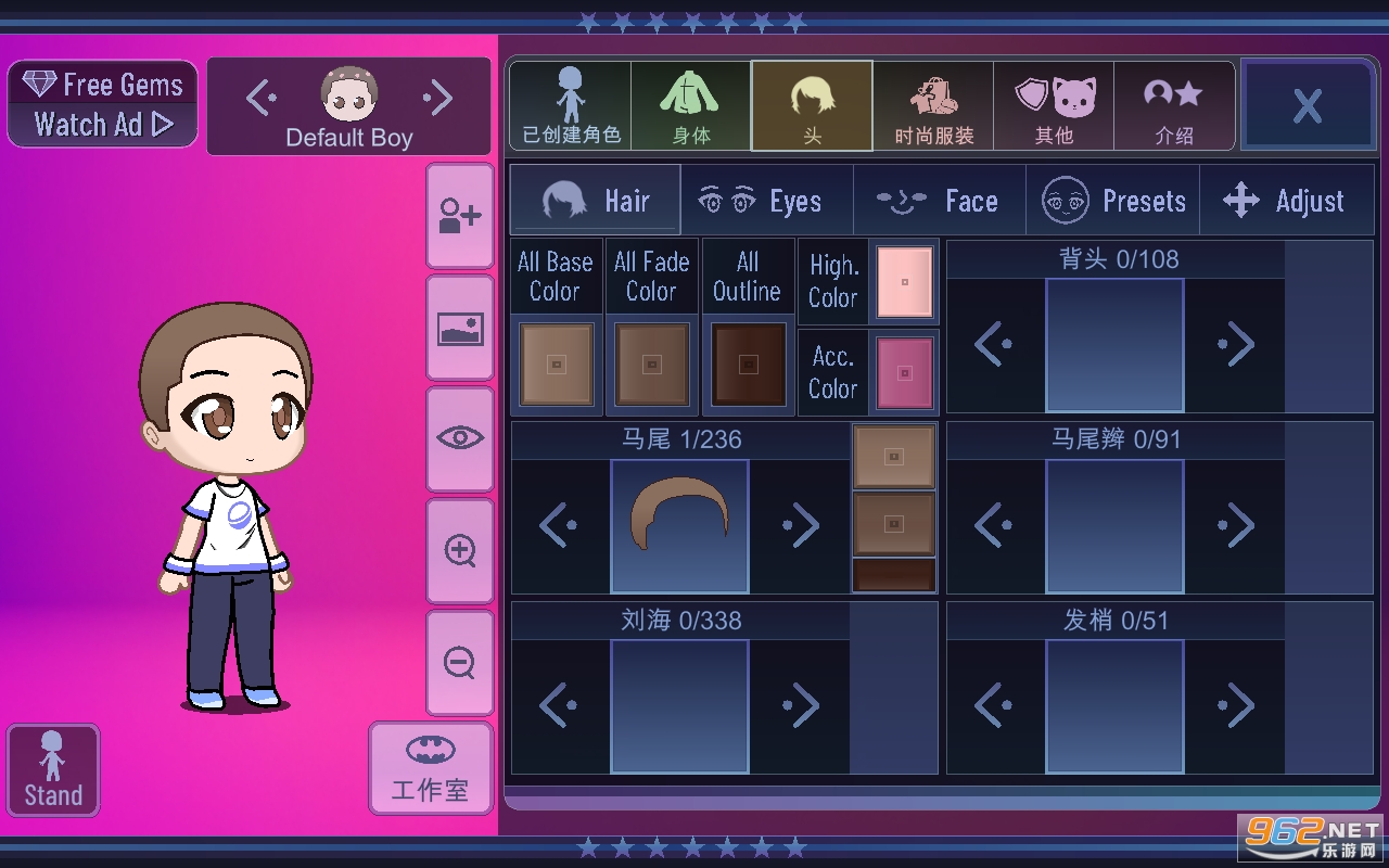 调整头发/眼睛/项目以适合您的角色!