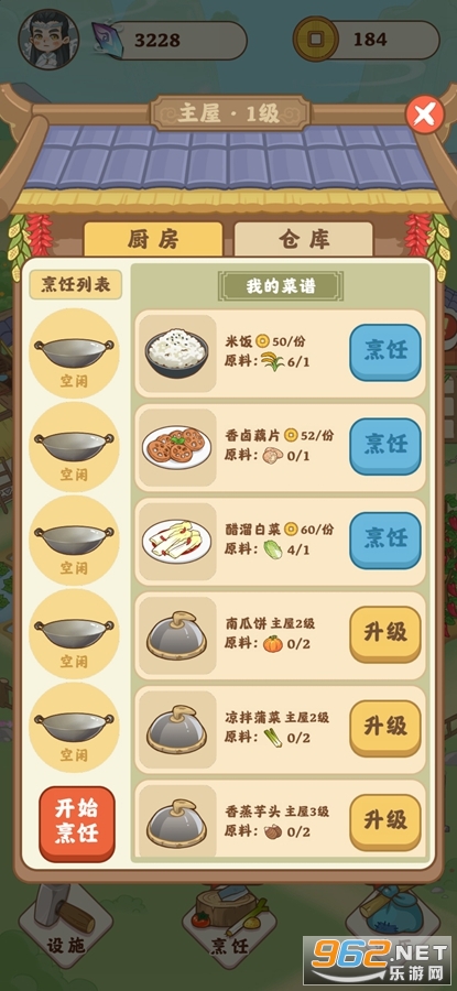 模拟种菜以及厨房烹饪美食;