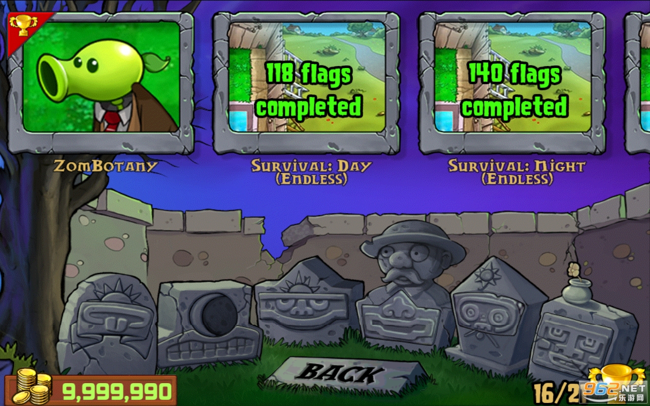 游戏中有冒险模式(Adventure)、迷你游戏(Mini-games)、解密模式(Puzzle)、生存模式(Survival)、花园(Zen Garden)五个模式。其中冒险模式有50个关卡,迷你游戏与解密模式分别有20个开放关卡。