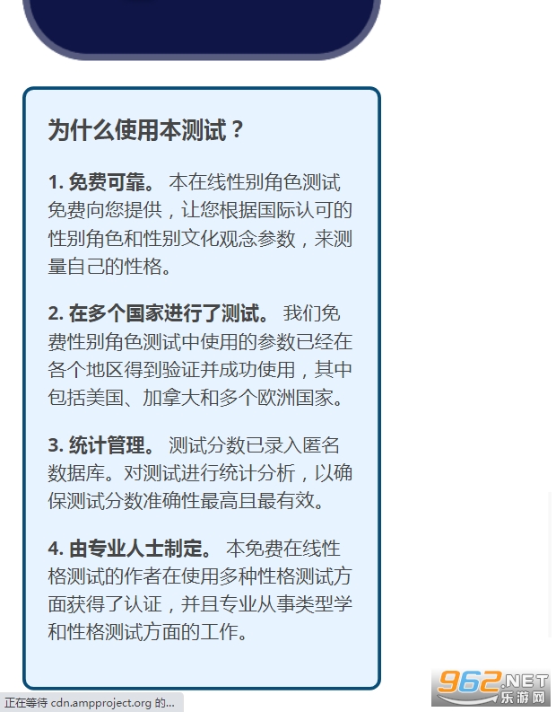 2.本测试仅以教育为目的。仅具备资格的心理健康专业人员才能进行决定性的人格评估或心理健康评估。