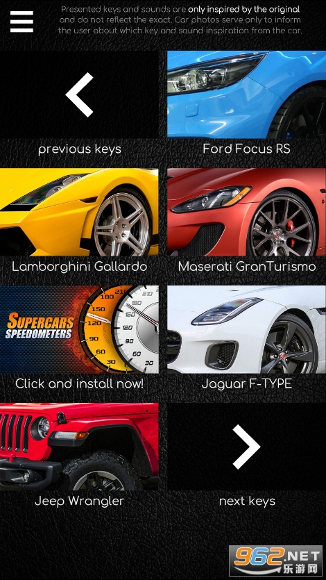这个应用程序是引擎的原始声音和最昂贵的汽车的钥匙