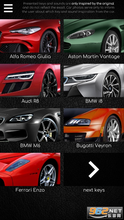 《跑车钥匙模拟器(Supercars Keys)》是一款超级有趣的模拟跑车钥匙游戏,玩家可以在这里选择玛莎拉蒂,牧马人,法拉利,阿斯顿马丁,奔驰s级,斯巴鲁翼豹等众多的车型,查看它们的钥匙样子,点击按钮,模拟该跑车引擎发动的声响,操作简单,声音逼真,带入感超强,适合装逼!