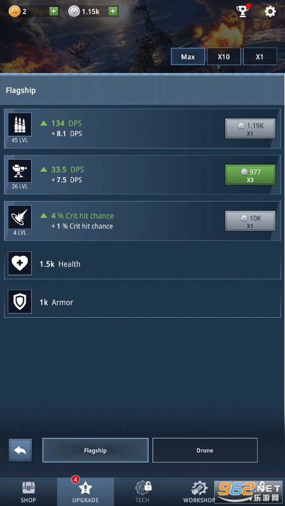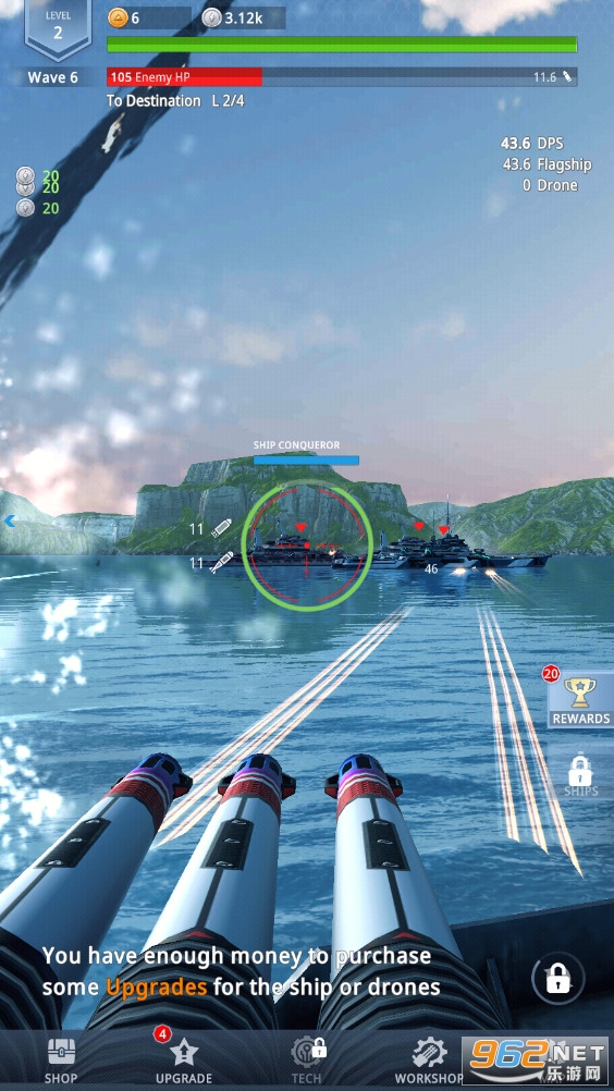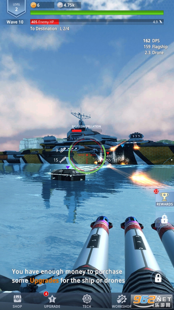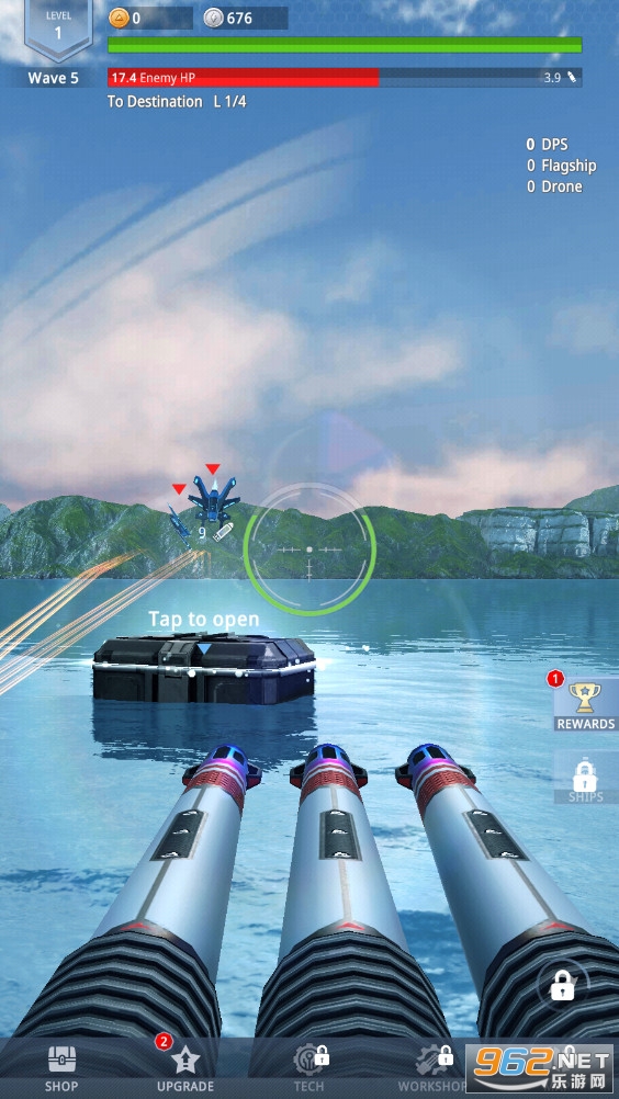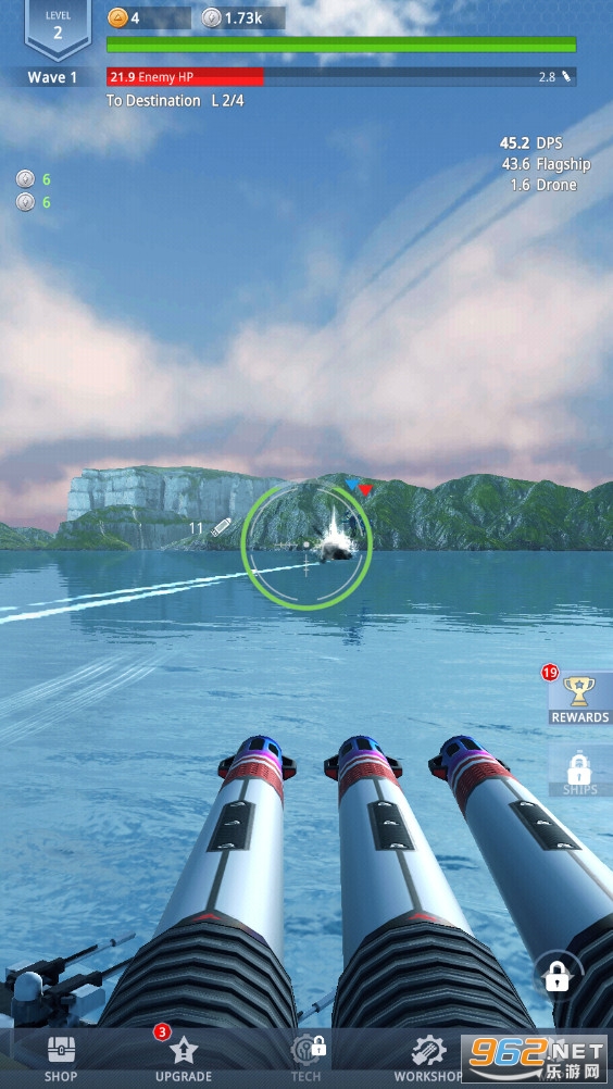 海量的武器、大炮和舰船在海军闲置射击游戏中用导弹、鱼雷和激光海啸射击你的敌人。