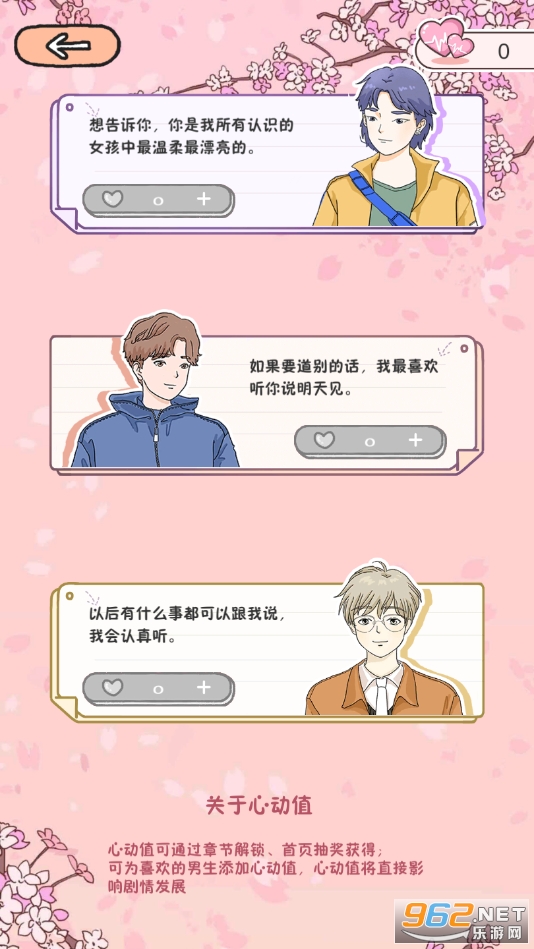 作为女主角的“我”和其他两个女生、三个男生一起生活在同一屋檐下,每隔3个月抽签选择一次恋爱CP,两两互组,和他一起尝试一段恋爱关系。有甜蜜有苦涩,可以精心布置自己的小窝、每日抽取自己的幸运塔罗牌、会被他邀请去音乐节、大家一起打扫房间、共同领养宠物、无聊时和他们聊天解闷、共同度过人间四季、一起积攒有意义的照片回忆……三个男生哪个才是我真正喜欢的?心动的次数不会骗人,最终结局由心动次数决定……