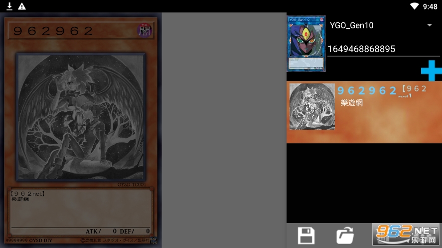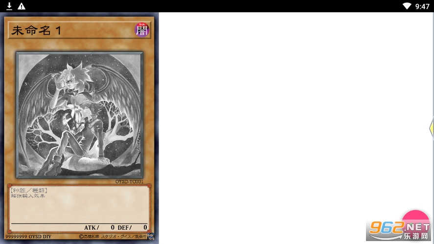 《游戏王卡牌制作器app》是一款可以模拟制作游戏王卡牌的app,玩家可以在这里自定义卡牌的类型,怪兽的属性,等级,名称,技能,编号,卡片的样式等等,打造专属于你的游戏王卡片,自有保存,和朋友分享,操作简单,感兴趣的话就来下载吧!