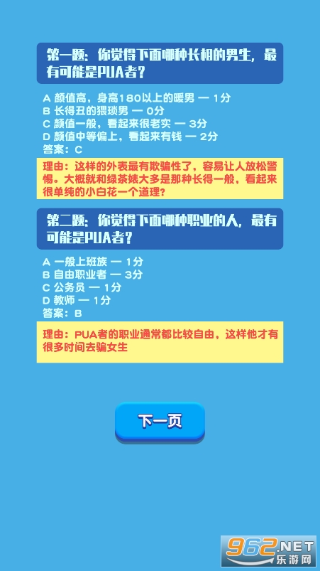 比较有趣的一款测试类型的小游戏,里面拥有pua鉴别水平测试,转盘游戏,测谎仪,潜在性格测等不同的小游戏让你来挑战,既可以进行趣味测试,又可以打发时间,玩游戏!