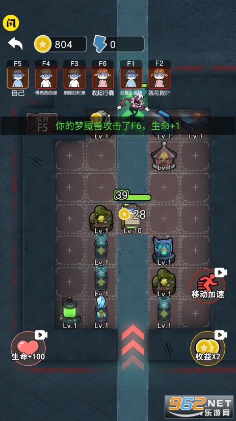 类似猛鬼宿舍的小游戏,玩法操作很简单,里面拥有大量的道具让你使用,不断地升级炮塔,房门,在这里自由的排兵布阵,噬梦者成功进入你的房间!