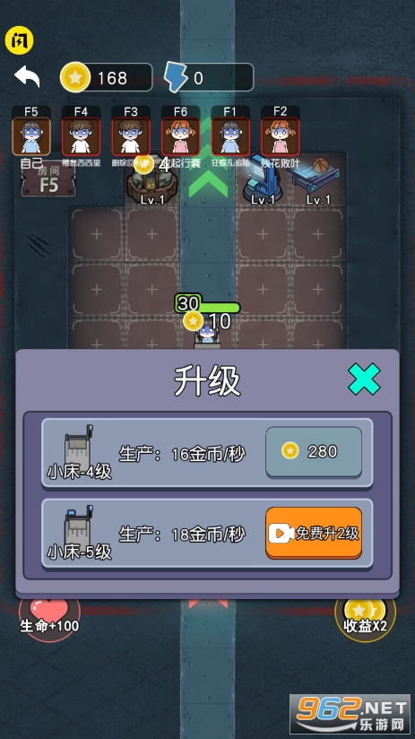 4、玩家的床位就横在道路中央,你将对抗的是下一位玩家制作的敌人,会随着玩家塔防的升级而变的更强。