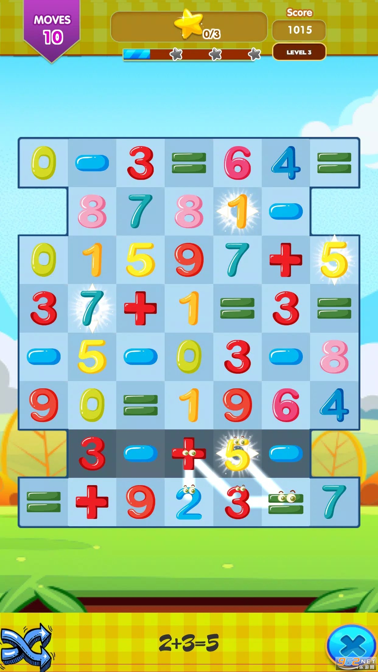 播放 如果您卡住并且无法再形成任何方程式,请单击游戏屏幕左下方的随机播放图标。
