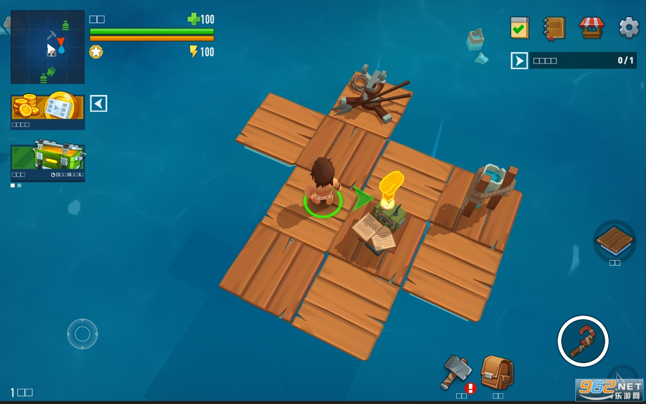 在海洋中营救幸存者,加入你们的队伍,沙箱建设也很有意思,竹筏的规模不断扩大。